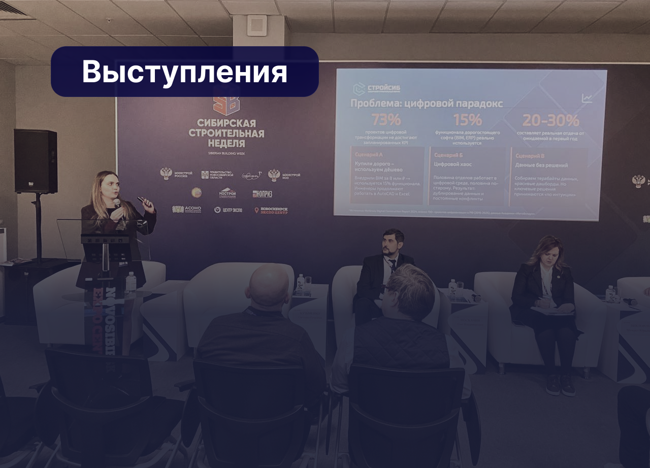 В выступления поучаствовали наши эксперты Алексей Алешин, (Ведущий специалист по внедрению цифровых продуктов), и Сергей Бирюков, (BIM-методолог):